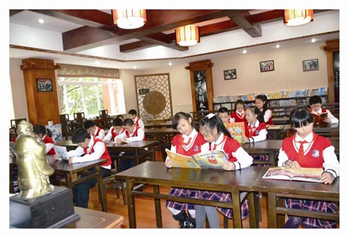 在今天的培新小学校园里,校园随处可见文化育人的痕迹: 操场上有五彩的剪纸墙、一个个经典故事刻在石头上、“木简”有《弟子规》、新苗墙上展示着每个学生不同的美、国学启蒙馆传承着国学、雅致的园丁书屋供老师学习……惬意舒适的外部环境为校园文化的内涵发展构起了“温床”。