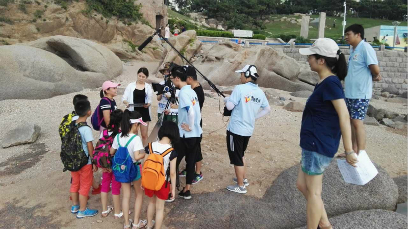 当天下午,记者跟随儿童剧《海底迷宫》剧组前往海边外景基地,并对剧组进行了采访。本次参演的6名小演员均为青岛本地小学生,最小的8岁,最大的12岁。拍摄当天气温高达35℃,但小演员拍摄热情不减。